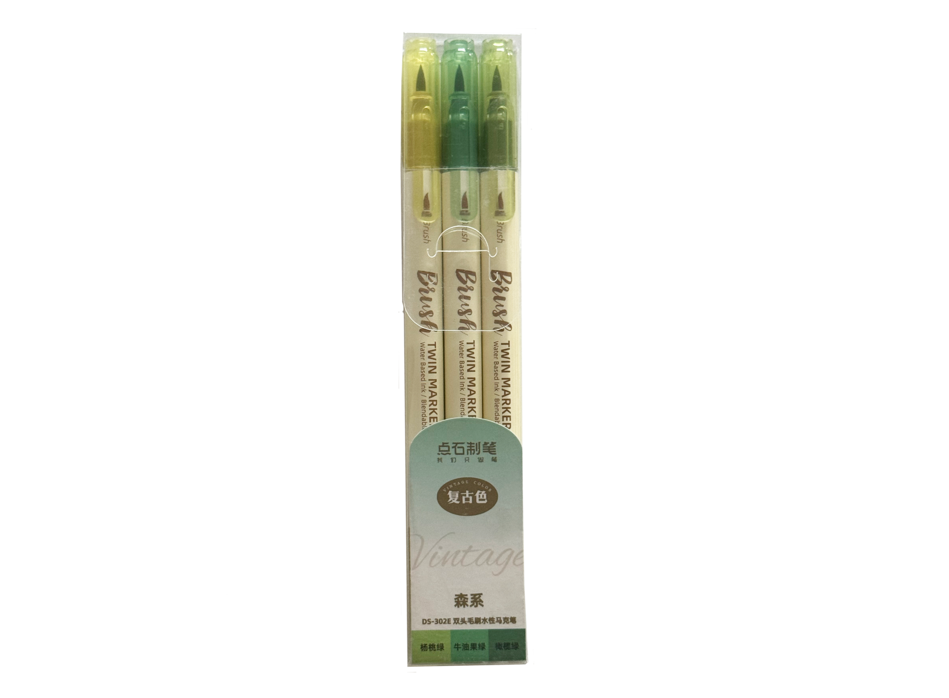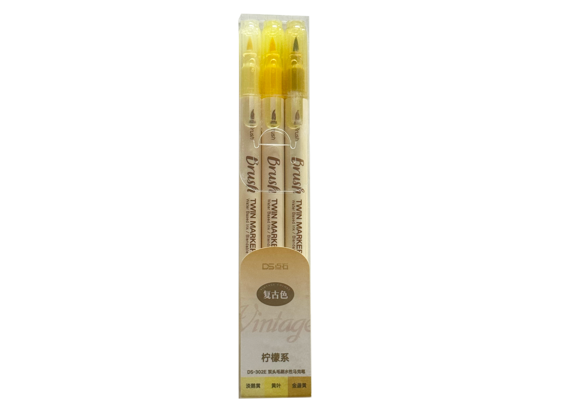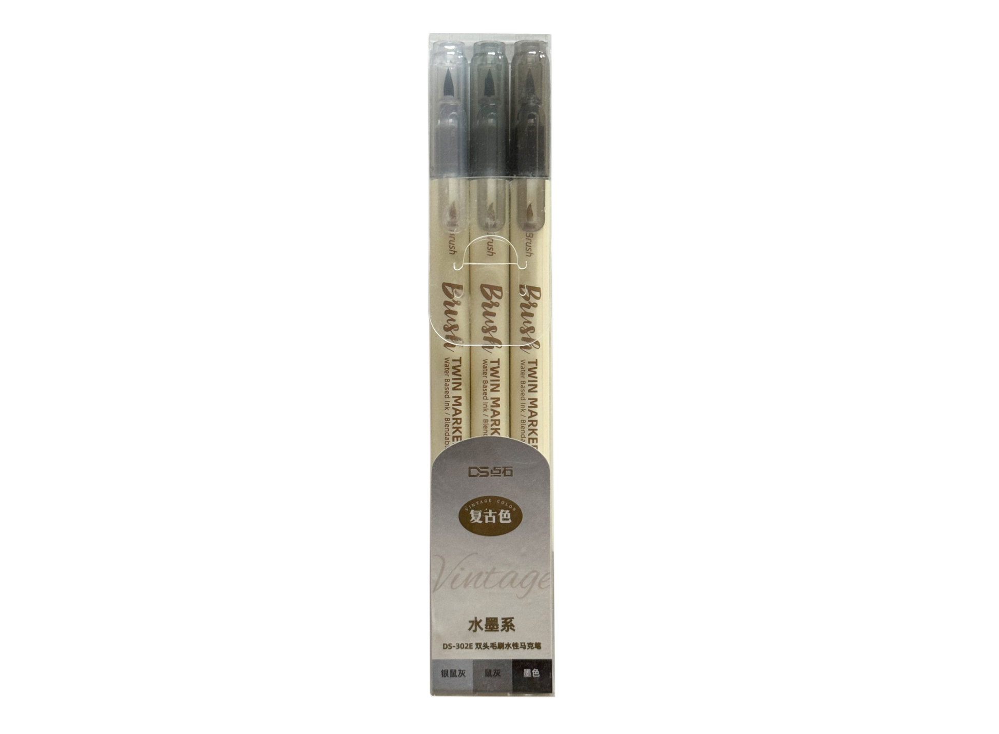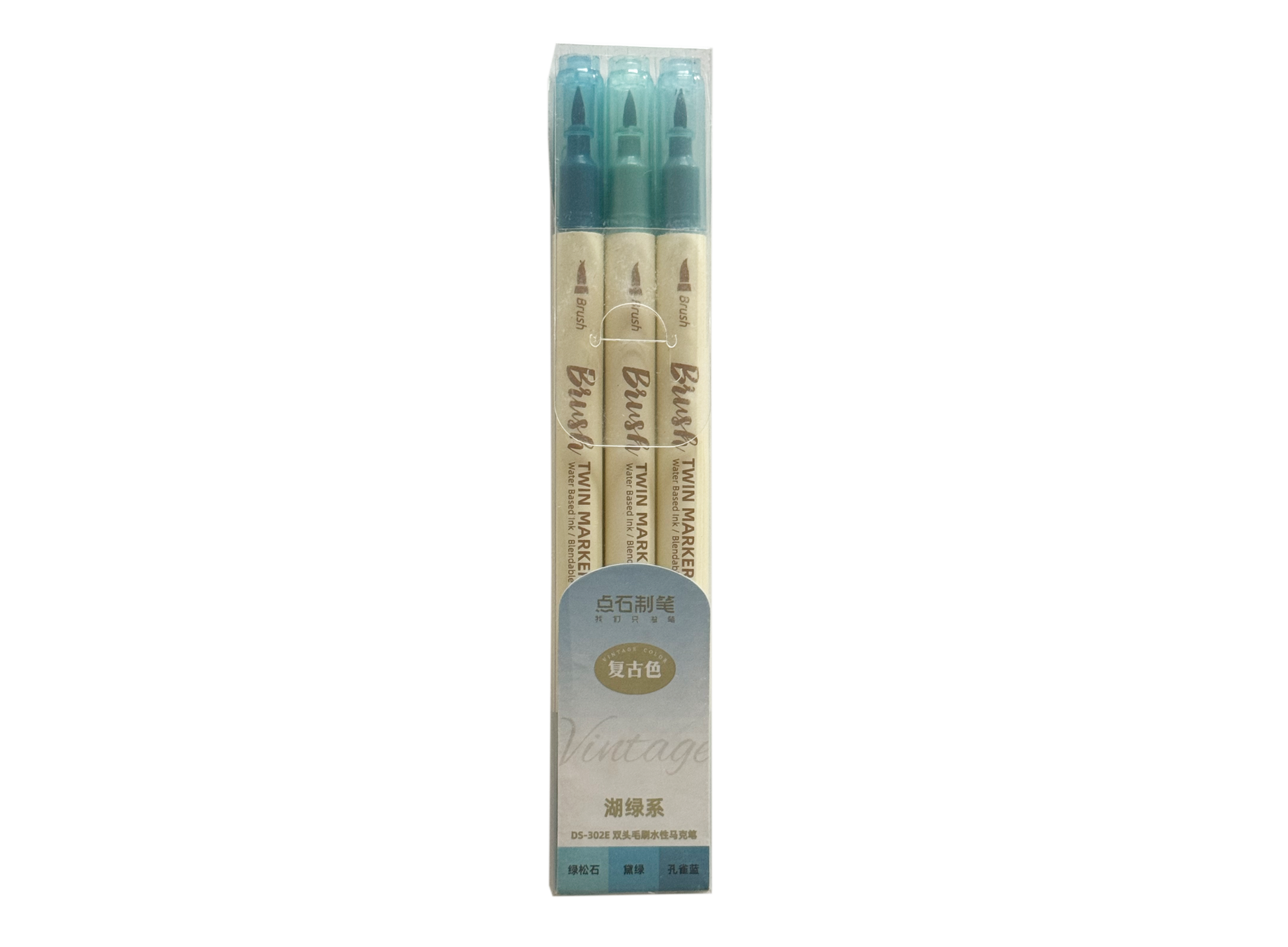Met zowel een penseelpunt als een fiber tip biedt de Brush Twin Pen van Dianshi kunstenaars veel veelzijdigheid. Ze worden geleverd in sets van 3, en elke set bevat markers waarvan de kleuren met elkaar verbonden zijn.